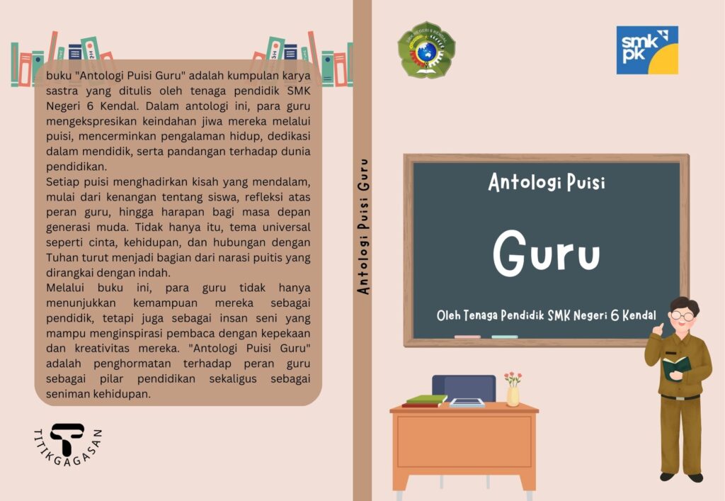 SinopsisBuku “Antologi Puisi Guru” adalah kumpulan karya sastra yang ditulis oleh tenaga pendidik SMK Negeri 6 Kendal. Dalam antologi ini, para guru mengekspresikan keindahan jiwa mereka melalui puisi, mencerminkan pengalaman hidup, dedikasi dalam mendidik, serta pandangan terhadap dunia pendidikan.